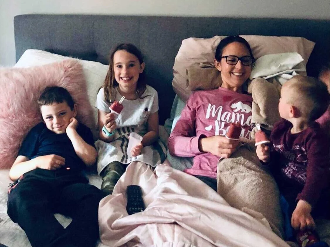 I am grateful today to be able to tell my health journey, standing strong and feeling empowered, but not without the incredible support from my husband, children, family, friends, coworkers, medical professionals, and the rest of my team. Last March the world shut down. I was unemployed and found myself at home with our three young children at, ages 4, 6 and 8 at the time, with a new task of home schooling the oldest two. My husband, Kelly, and I have been married for 10 years. We have been through a lot together, but this was no doubt, the start of one of the most stressful and challenging times in our lives.